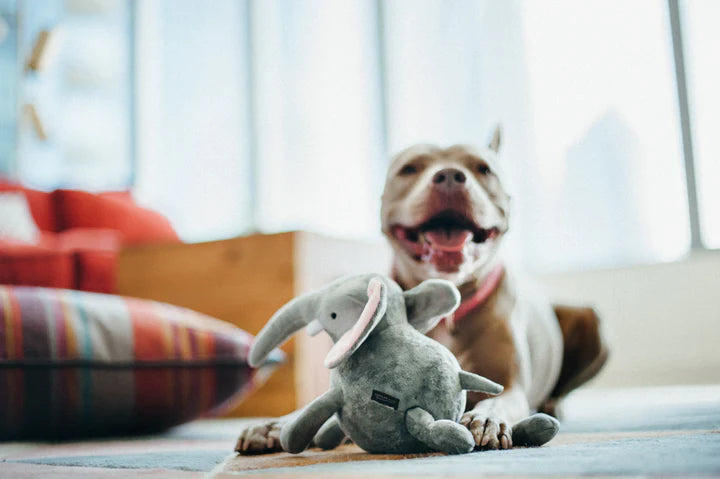 Embark on a playful journey with P.L.A.Y.’s Big Five of Africa Elephant toy! This delightful giant boasts sliding hind limbs for dynamic movement during play. The oversized squeaker, emitting a special sound, will captivate your dog's senses. Bring the majesty of the Savannah into your home as your pet parades around with this adorable elephant companion.