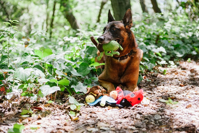 Get ready to welcome P.L.A.Y.'s Bugging Out Rhino Beetle to your pup's toy lineup! Inspired by the captivating Japanese green Rhino Beetle, this plush toy comes equipped with a squeaker for playful fun. Perfect for dogs who love unique and nature-themed toys, this beetle is here to wiggle its way into your pup’s heart.