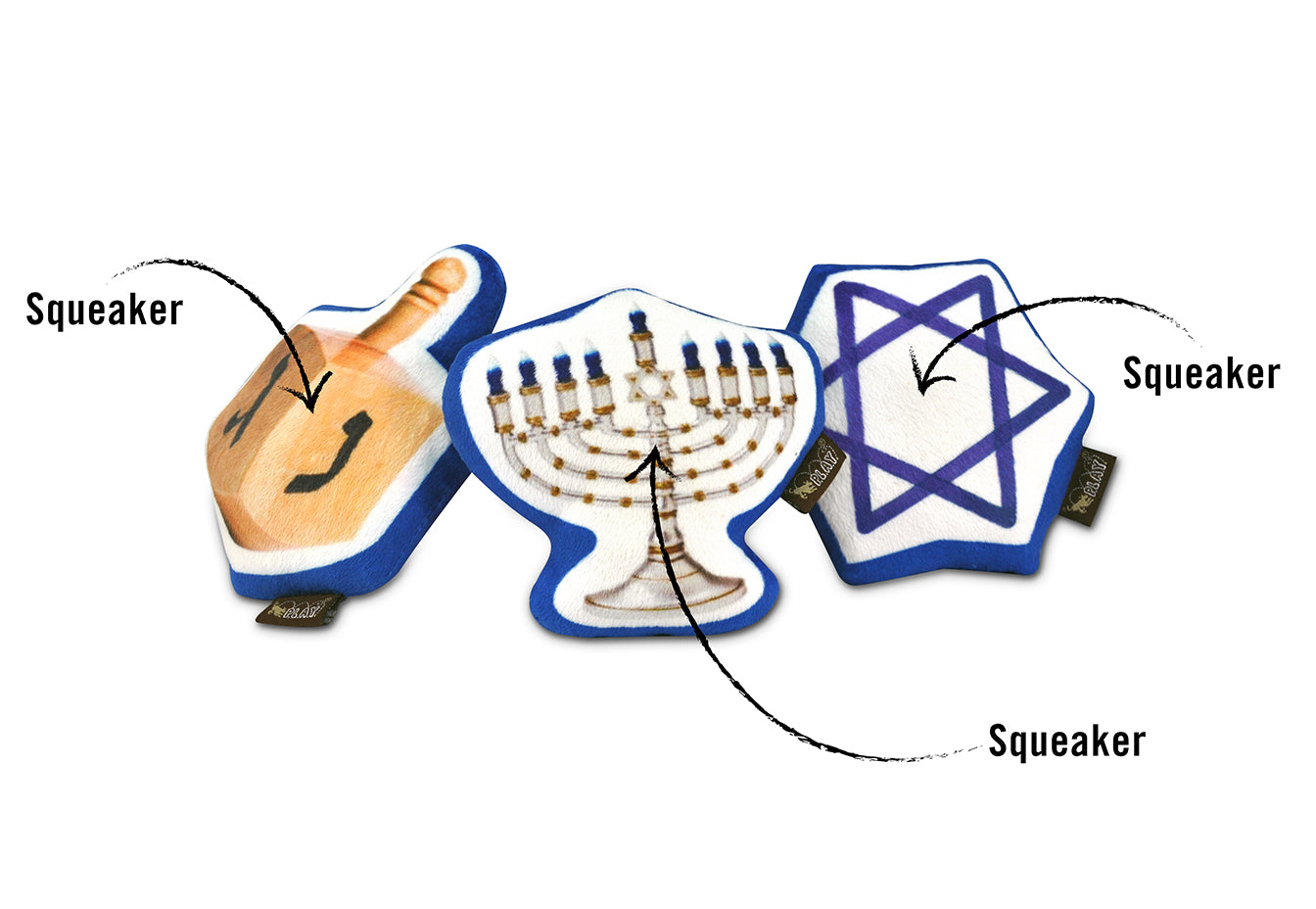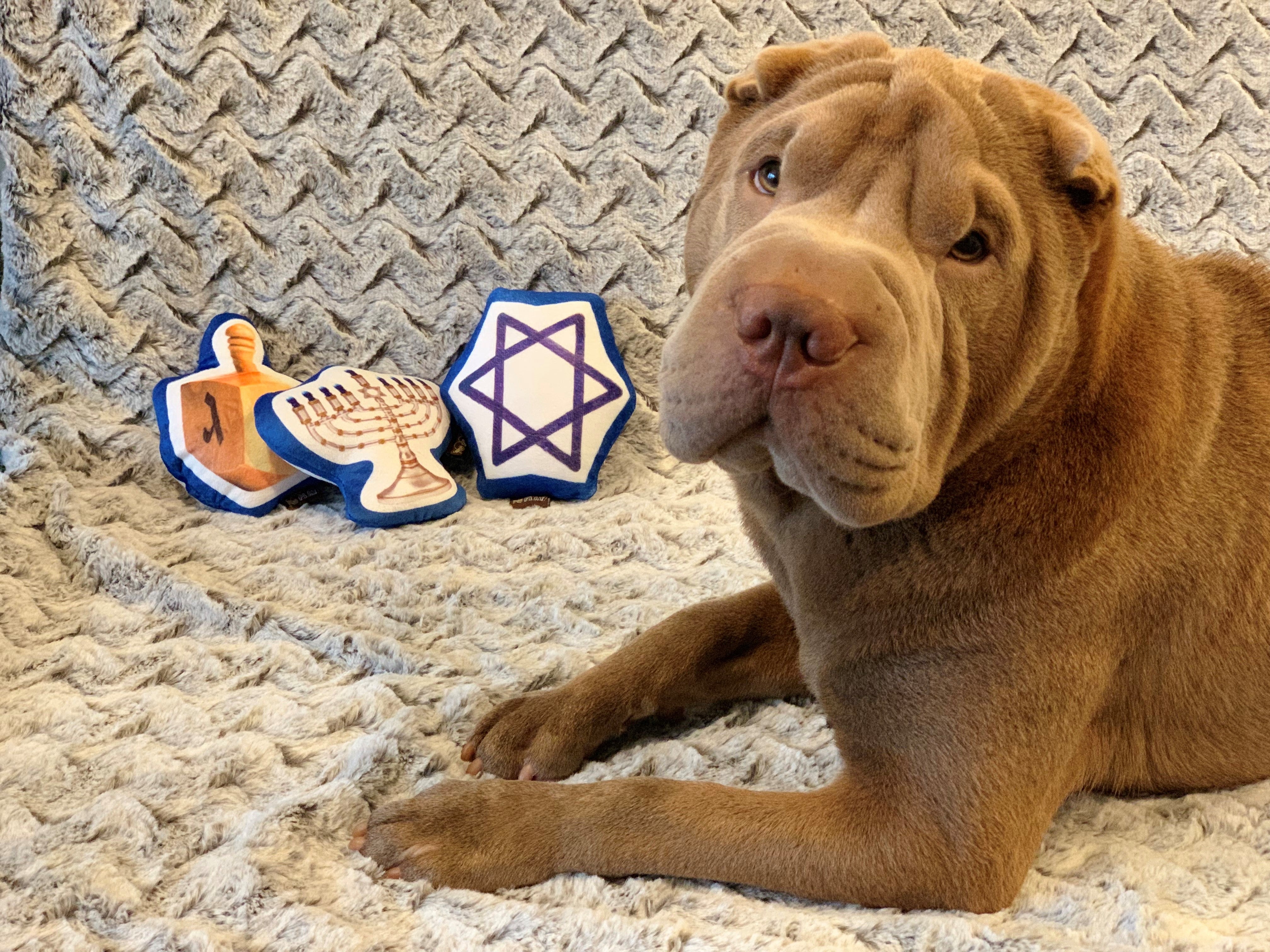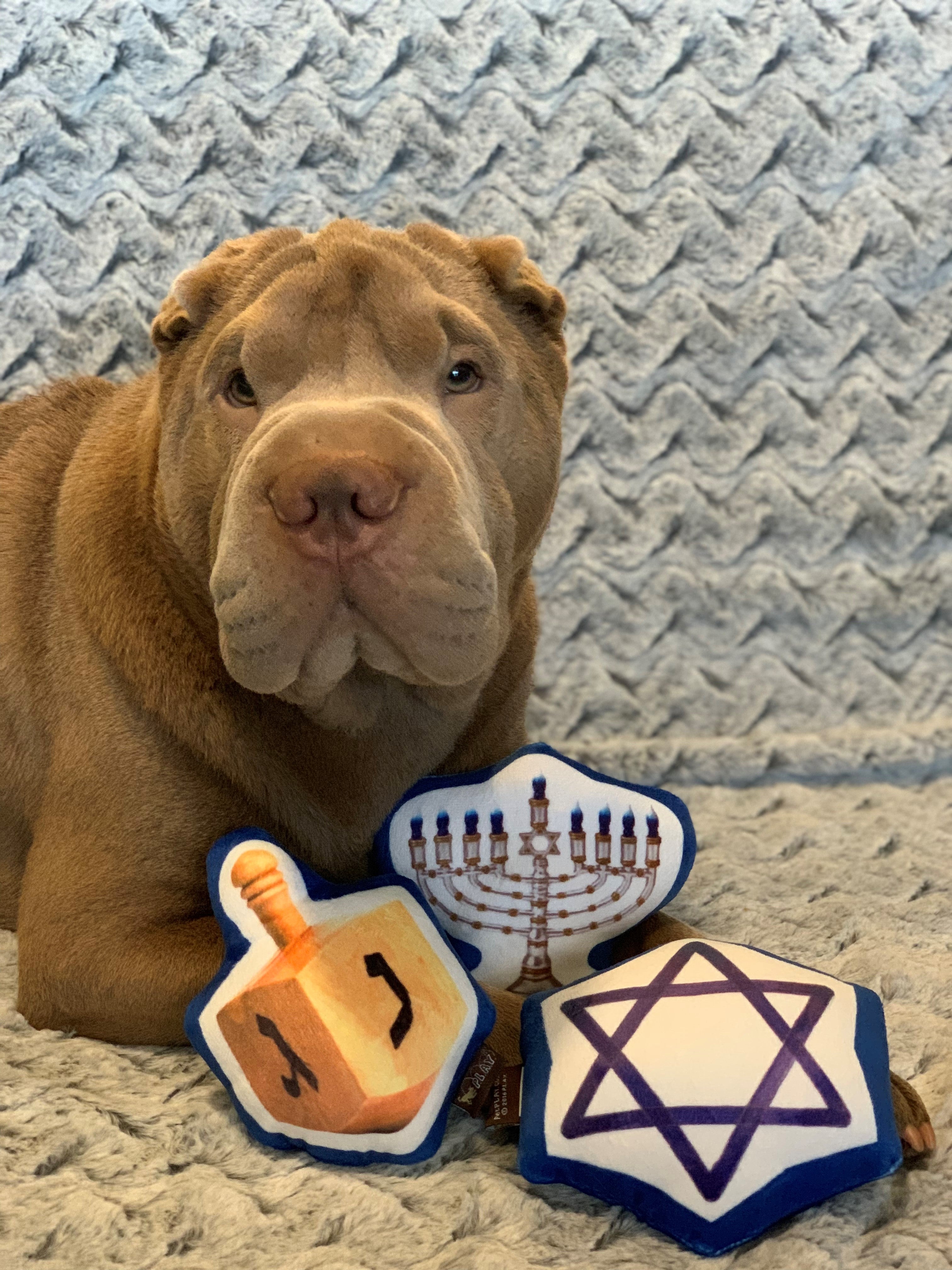 Celebrate the Festival of Lights with Hanukkah dog toys from P.L.A.Y. Inspired by Hanukkah's most iconic symbols, these kosher toys will fulfill your pup’s wish list. They're plushy, squeaky, and the perfect Hanukkah gifts for your pets!