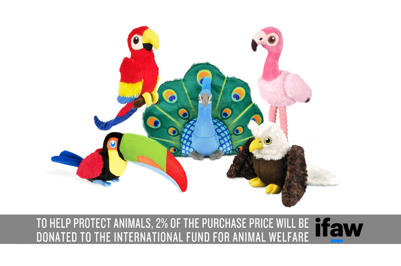 Get ready to watch your furry friend’s excitement soar when you surprise them with our Fetching Flock Plush Toy Collection! This fabulous flock of toys includes a Peacock, Eagle, Parrot, Flamingo and Toucan that are just waiting to get your pup’s tail (feathers) shaking with their alluring crinkles, numerous squeakers and satisfying crunches.