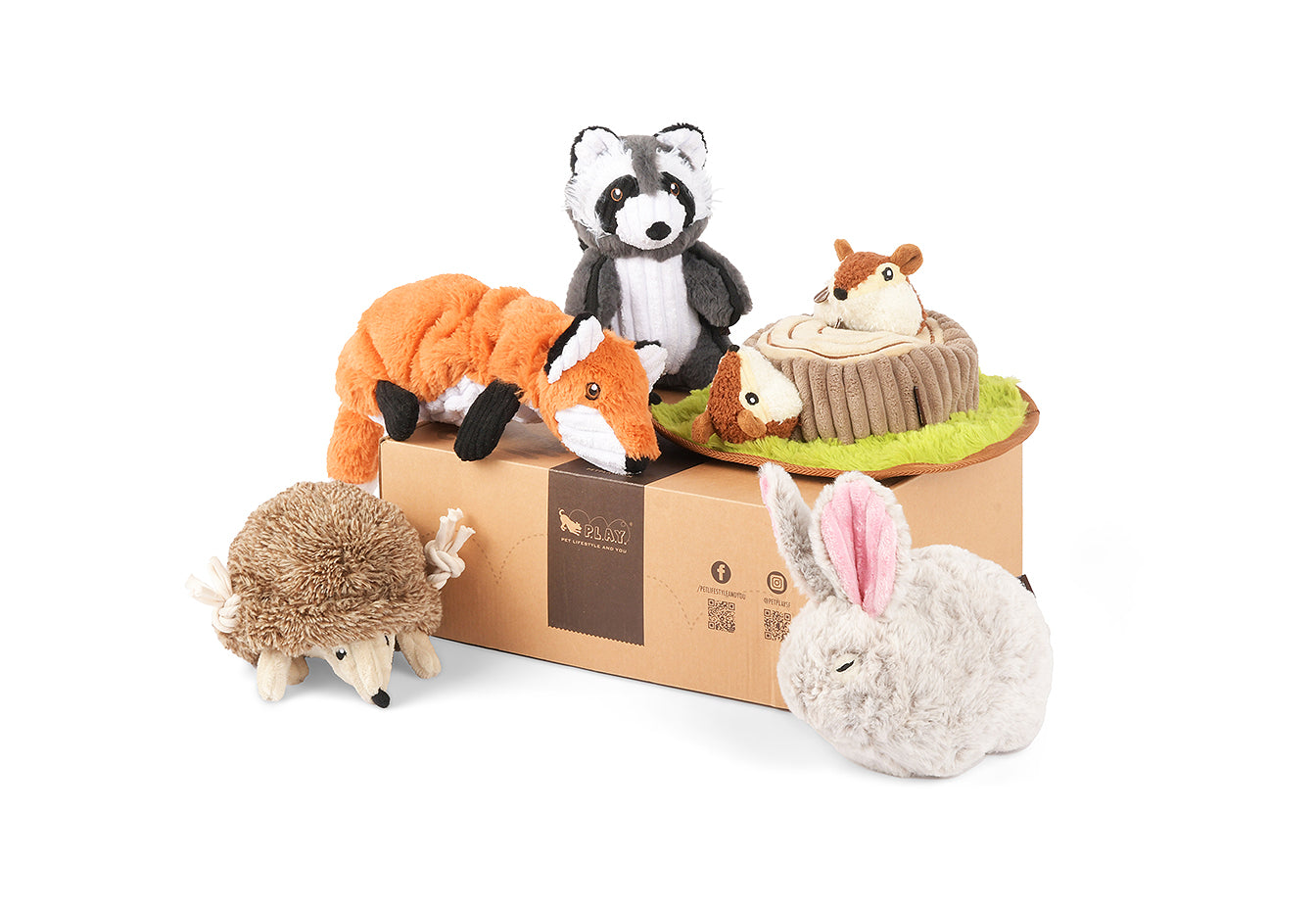 Looking for an adventure? You’re barking up the right tree! Embark on a playful journey with P.L.A.Y.’s Forest Friends toy set! This collection features a whimsical assortment of toys inspired by our favorite furry critters –a bunny, fox, hedgehog, raccoon, and chipmunks (Oh My!). Your canine companion will get a taste of the great outdoors alongside their new pals!